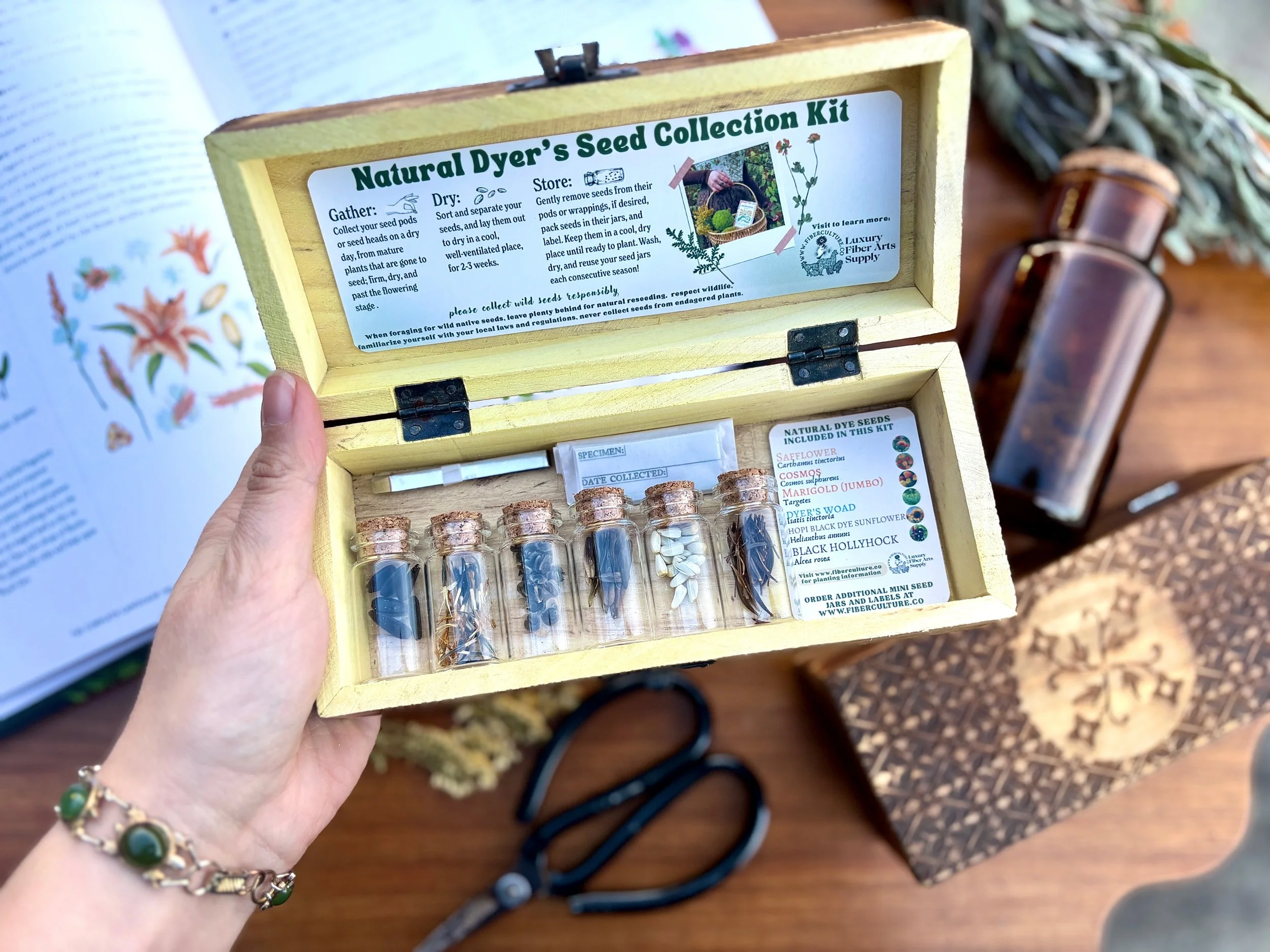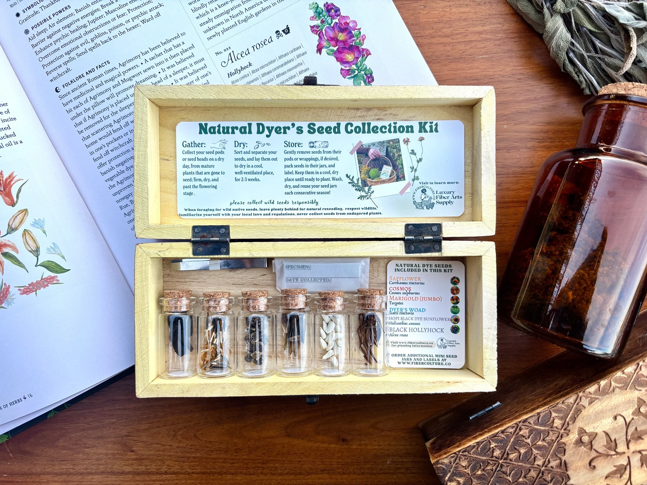 Natural Dyer's Seed Collection and Storage Kit, Carved Wood Gift Box, Limited Edition